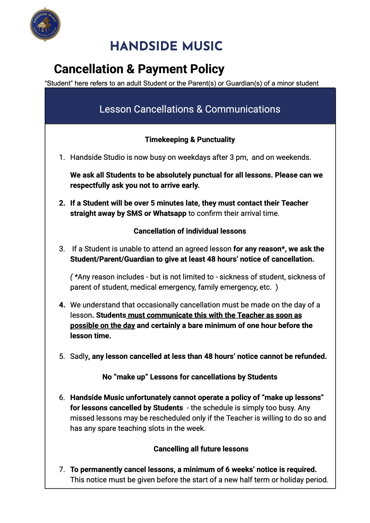[email protected] with "Handside Music Privacy Policy" in the subject line or give us a call at the number below.